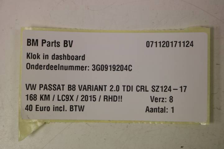 Klok in dashboard VW Passat B8 Variant