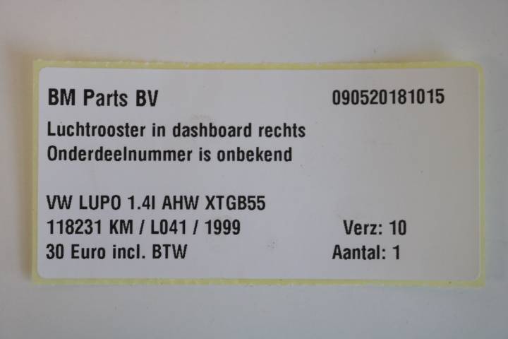 Luchtrooster in dashboard rechts VW Lupo