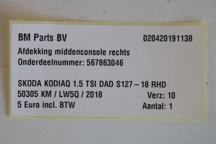 Afdekking middenconsole rechts Skoda Kodiaq