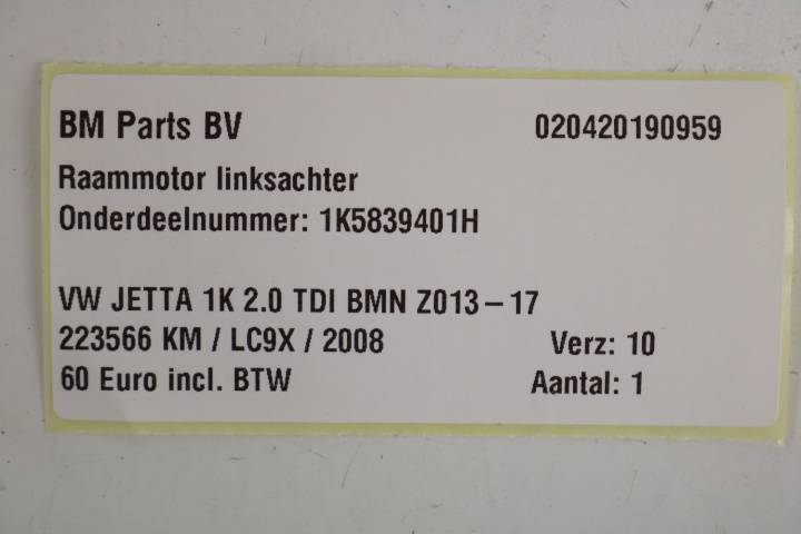 Raammotor linksachter VW JETTA 1K