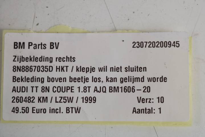 Zijbekleding rechts Audi TT 8N