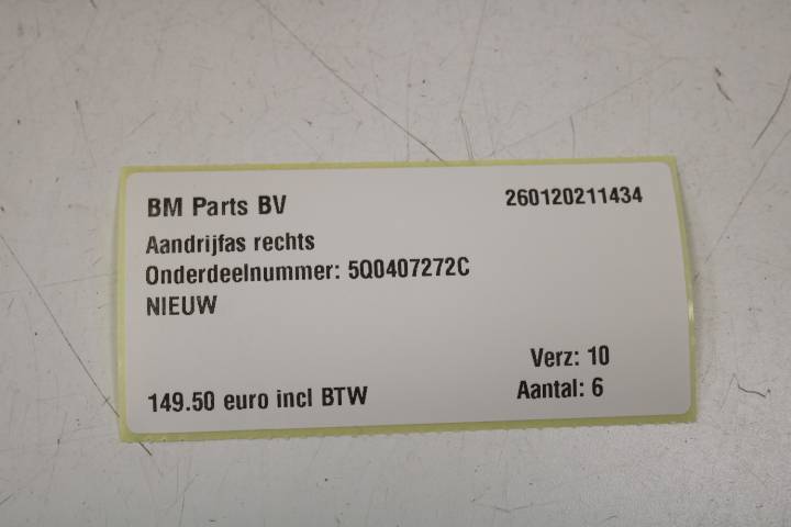 Aandrijfas rechts VW Golf 7 / A3 8V