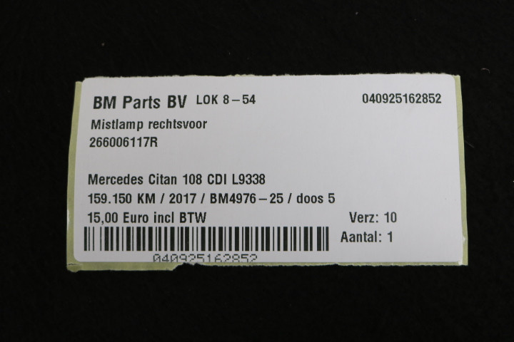 Mistlamp rechtsvoor Mercedes Citan