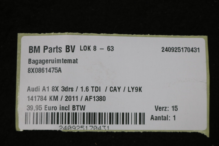 Bagageruimtemat Audi A1 8X