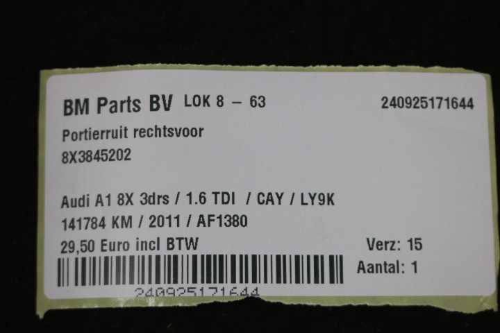 Terug / Exterieur / Wissers & Ruiten / Portier / Portierruit rechtsvoor Audi A1 8X