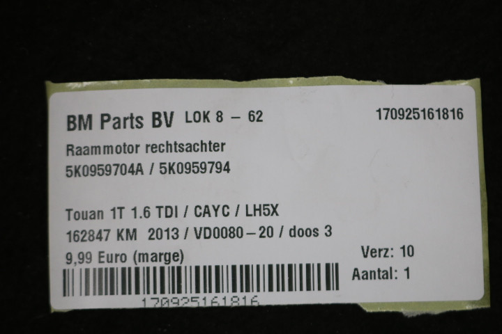 Raammotor rechtsachter VW Touran 1T
