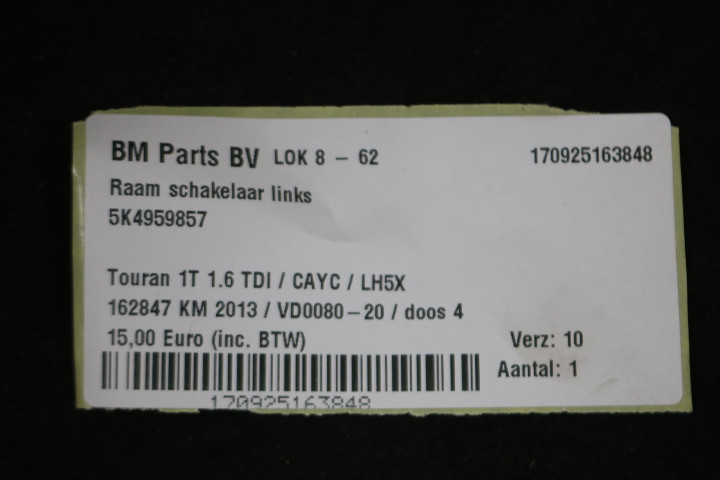 Raam schakelaar links VW Touran 1T