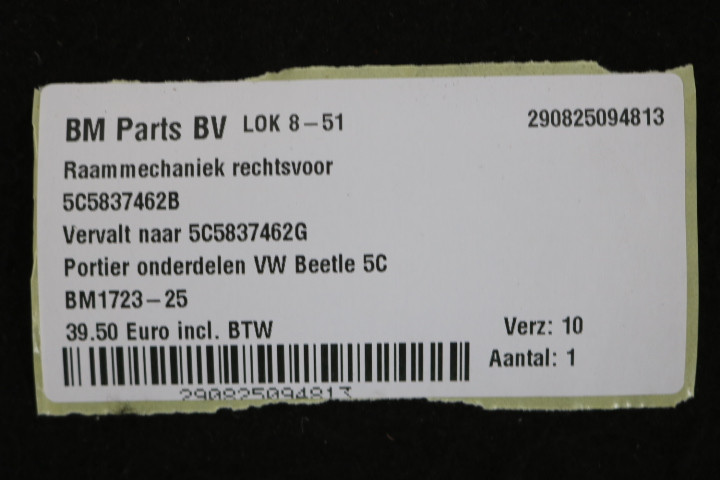 Raammechaniek rechtsvoor VW Beetle 5C