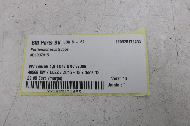 Portierslot rechtsvoor VW Touran 1T