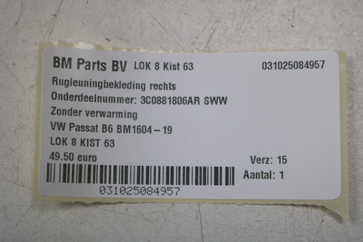 Rugleuningbekleding rechts VW Passat B6