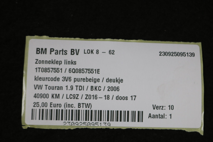 Zonneklep links beige VW Touran 1T
