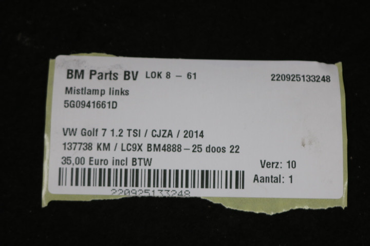 back / Exterieur / Verlichting / Mistlamp / Mistlamp links VW Golf 7