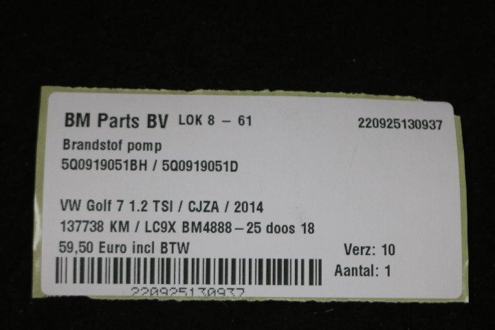 Terug / Exterieur / Brandstof / Opvoerpomp / Brandstofpomp VW Golf 7