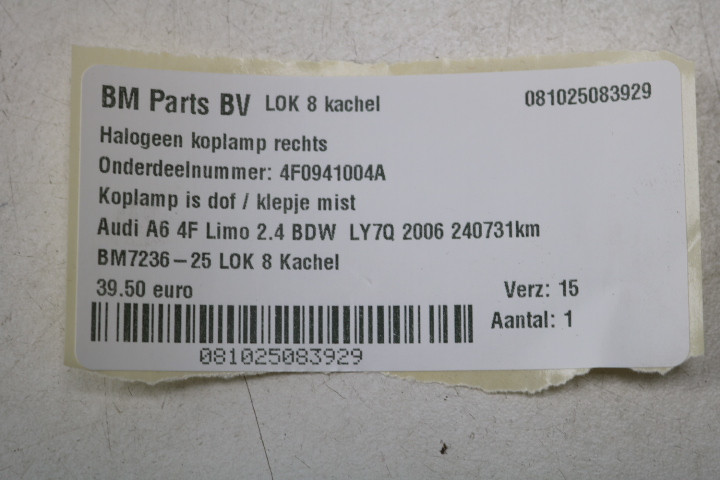 Halogeen koplamp rechts Audi A6 4F Limo