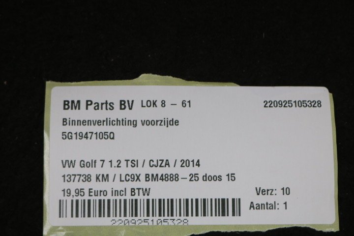 Binnenverlichting voorzijde VW Golf 7