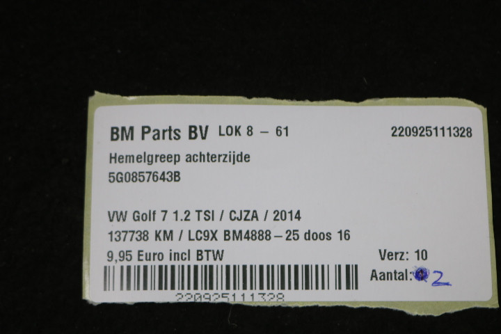 Hemelgreep achterzijde VW Golf 7