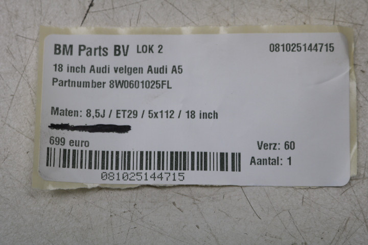 ORIGINEEL! 18 inch Audi velgen Audi A5! 8W0601025FL