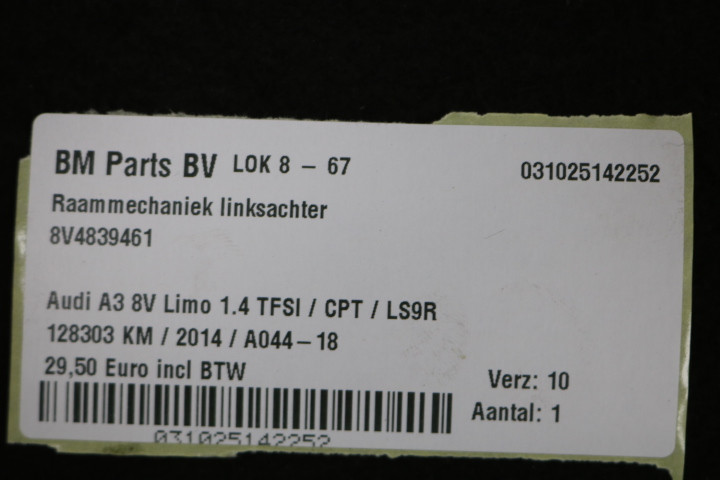 Raammechaniek linksachter Audi A3 8V