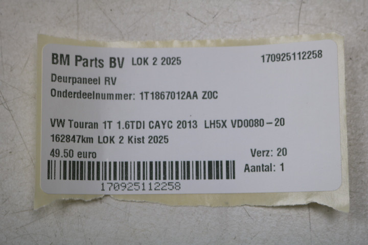 Deurpaneel RV VW Touran 1T Z0C