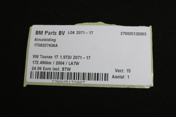 Aircoleiding VW Touran 1T