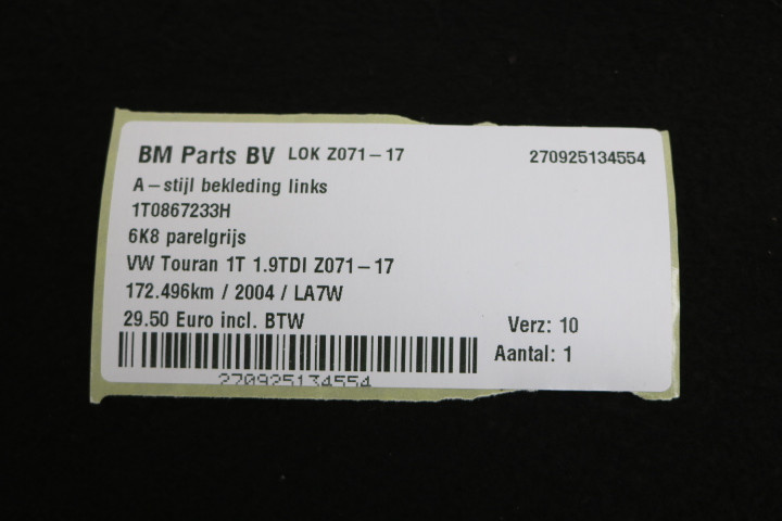 A-stijlbekleding links VW Touran 1T
