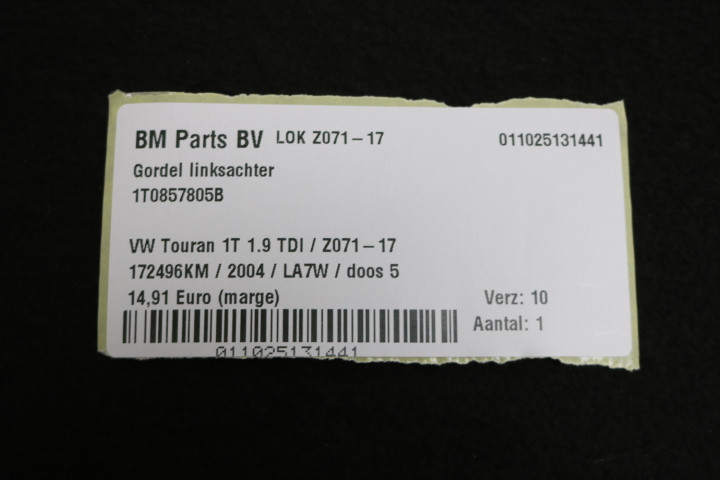 Gordel linksachter VW Touran 1T