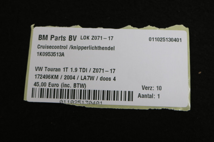 Cruisecontrol / knipperlichthendel VW Touran 1T