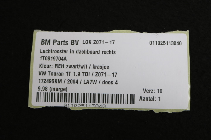 Onderdeelnummer: 1T0819704A
