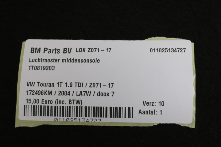 Luchtrooster middenconsole VW Touran 1T