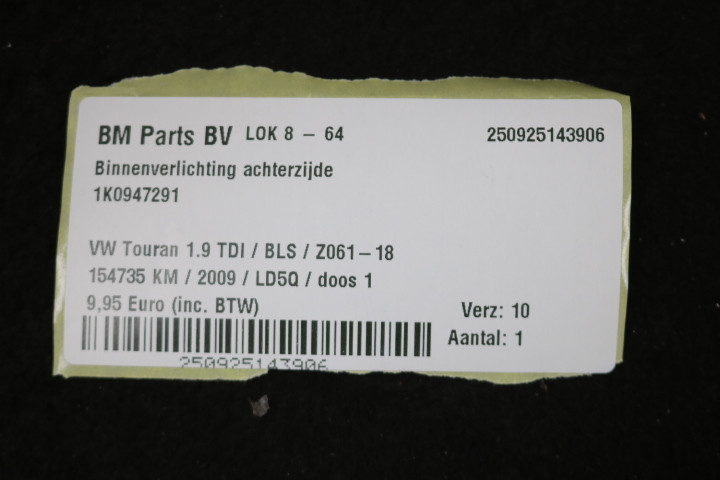 Binnenverlichting achterzijde VW Touran 1T