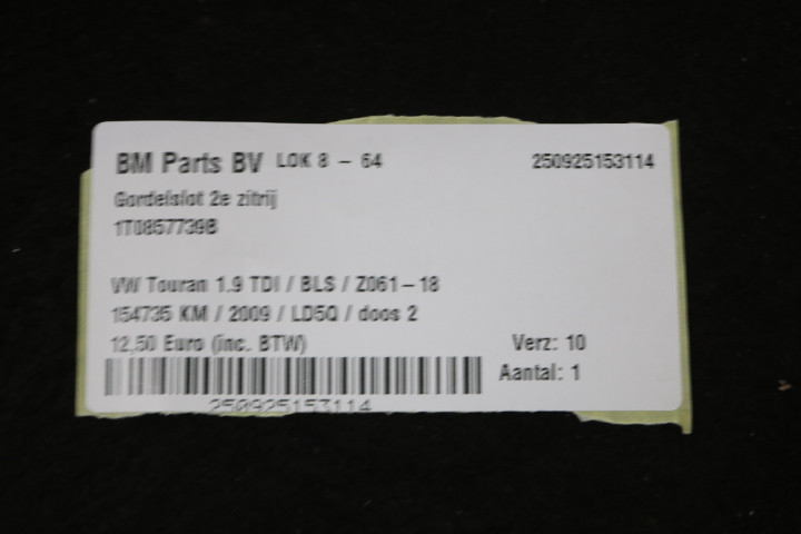 Gordelslot 2e zitrij VW Touran 1T