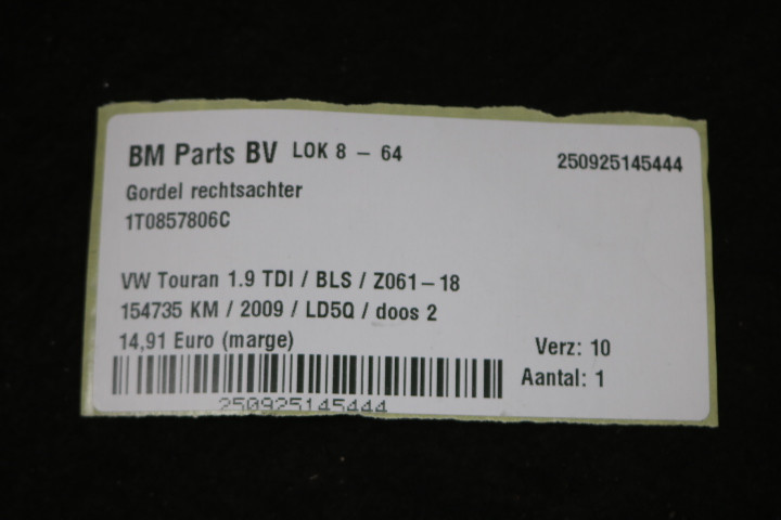 Gordel rechtsachter VW Touran 1T