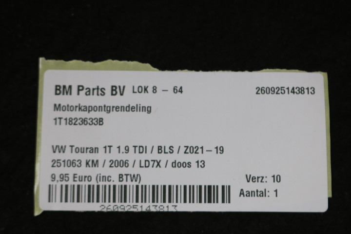 Motorkapontgrendeling VW Touran 1T