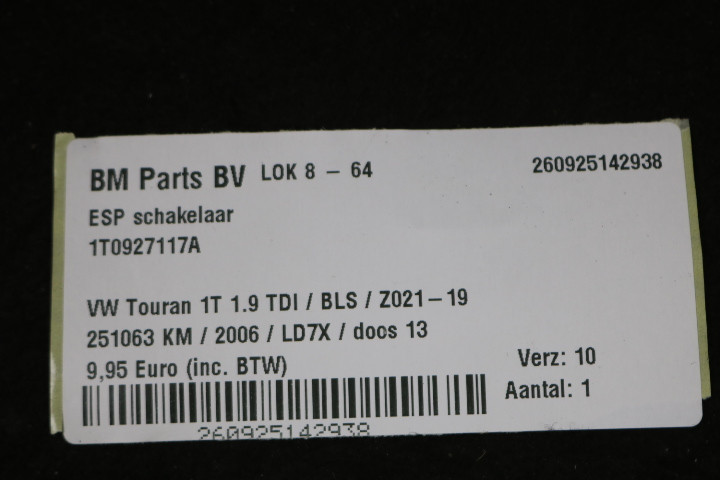 ESP schakelaar VW Touran 1T