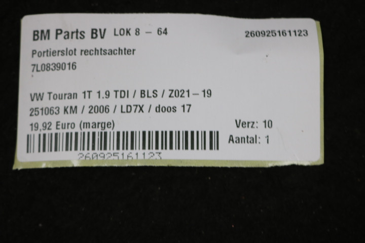 Portierslot rechtsachter VW Touran 1T