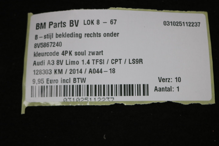 B-stijlbekleding rechts onder Audi A3 8V Limo