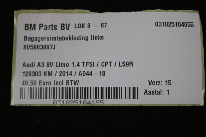 Bagageruimtebekleding links Audi A3 8V Limo