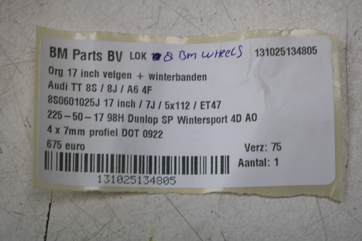 WINTER! ORIGINEEL! 17 inch velgen Audi TT 8S 8J - A6 4F! 8S0601025J