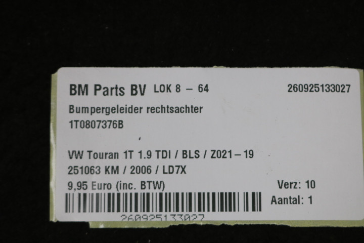 Bumpergeleider rechtsachter VW Touran 1T
