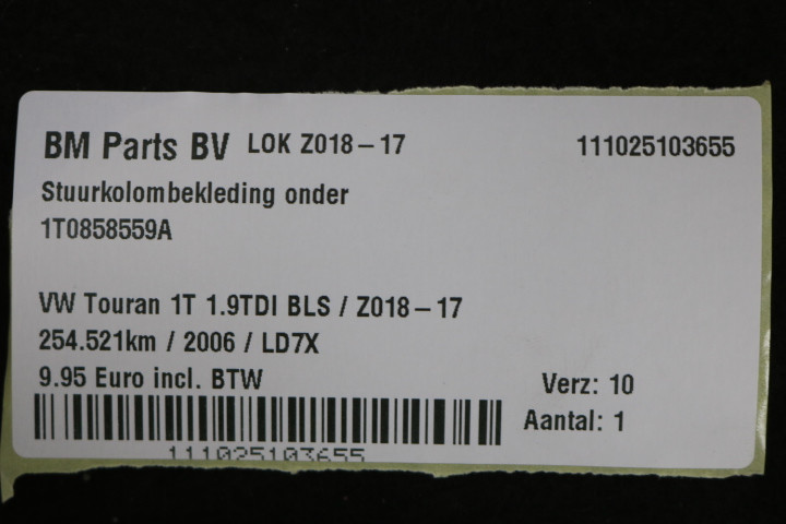 Stuurkolombekleding onder VW Touran 1T