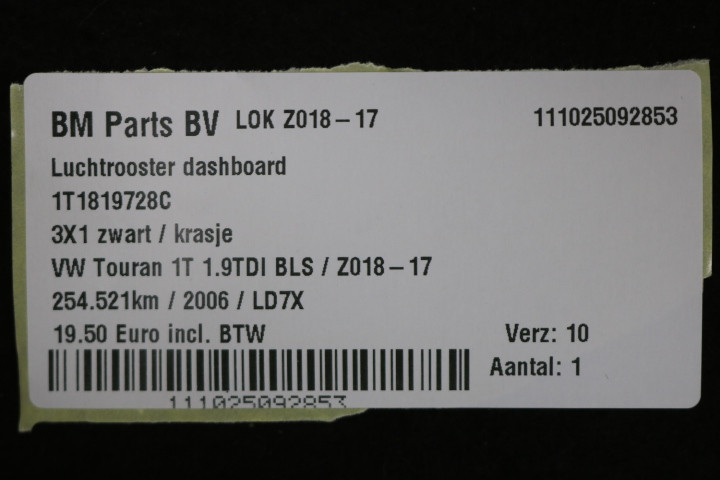 Luchtrooster dashboard VW Touran 1T