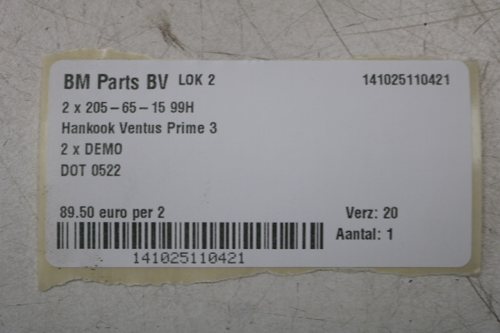 2 x 205-65-15 99H Hankook Ventus Prime 3