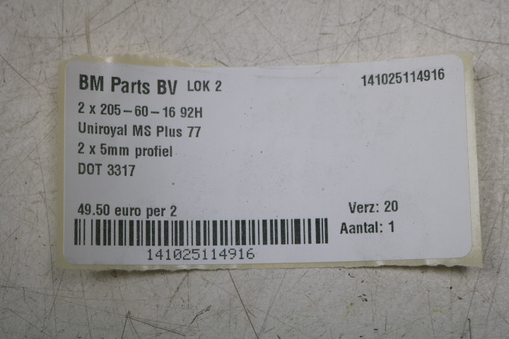 2 x 205-60-16 92H Uniroyal MS Plus 77