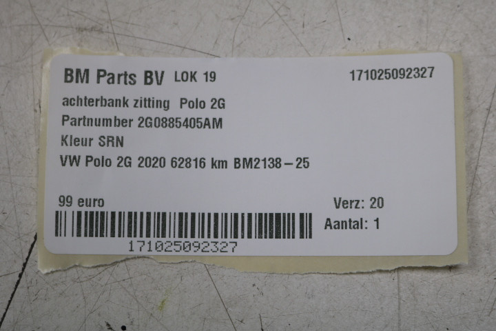 Achterbank zitting VW Polo 2G
