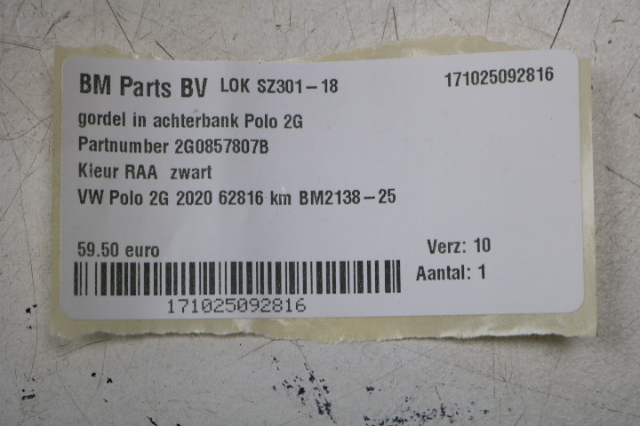 Gordel in achterbank VW Polo 2G