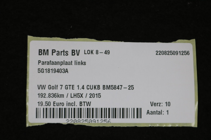 Parafaanplaat links VW Golf 7