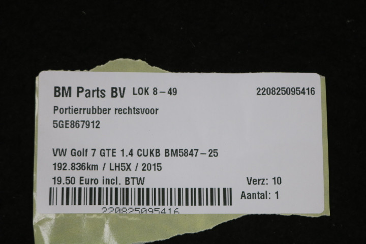 Portierrubber RV VW Golf 7 GTE