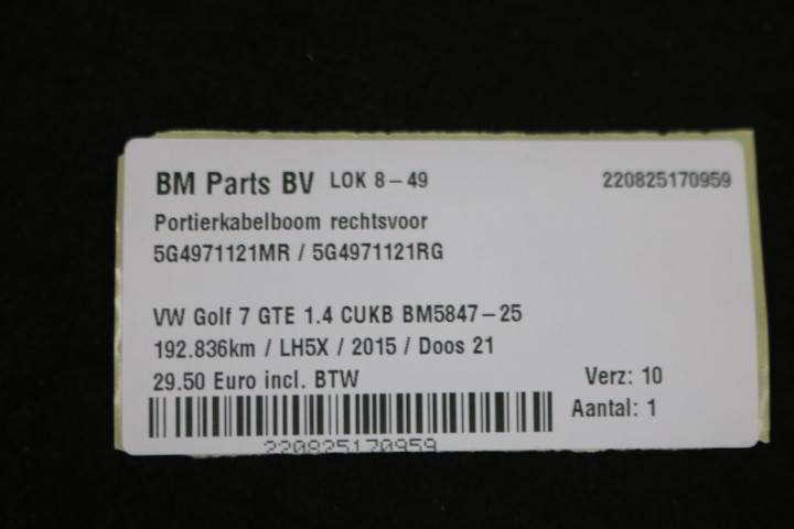 Portierkabelboom RV VW Golf 7