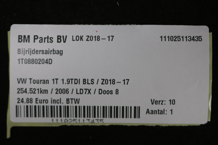 Bijrijdersairbag VW Touran 1T