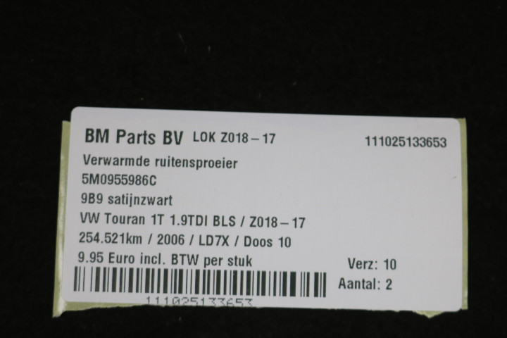 Terug / Exterieur / Wissers & Ruiten / Sproeier / Verwarmde ruitensproeier VW Touran 1T